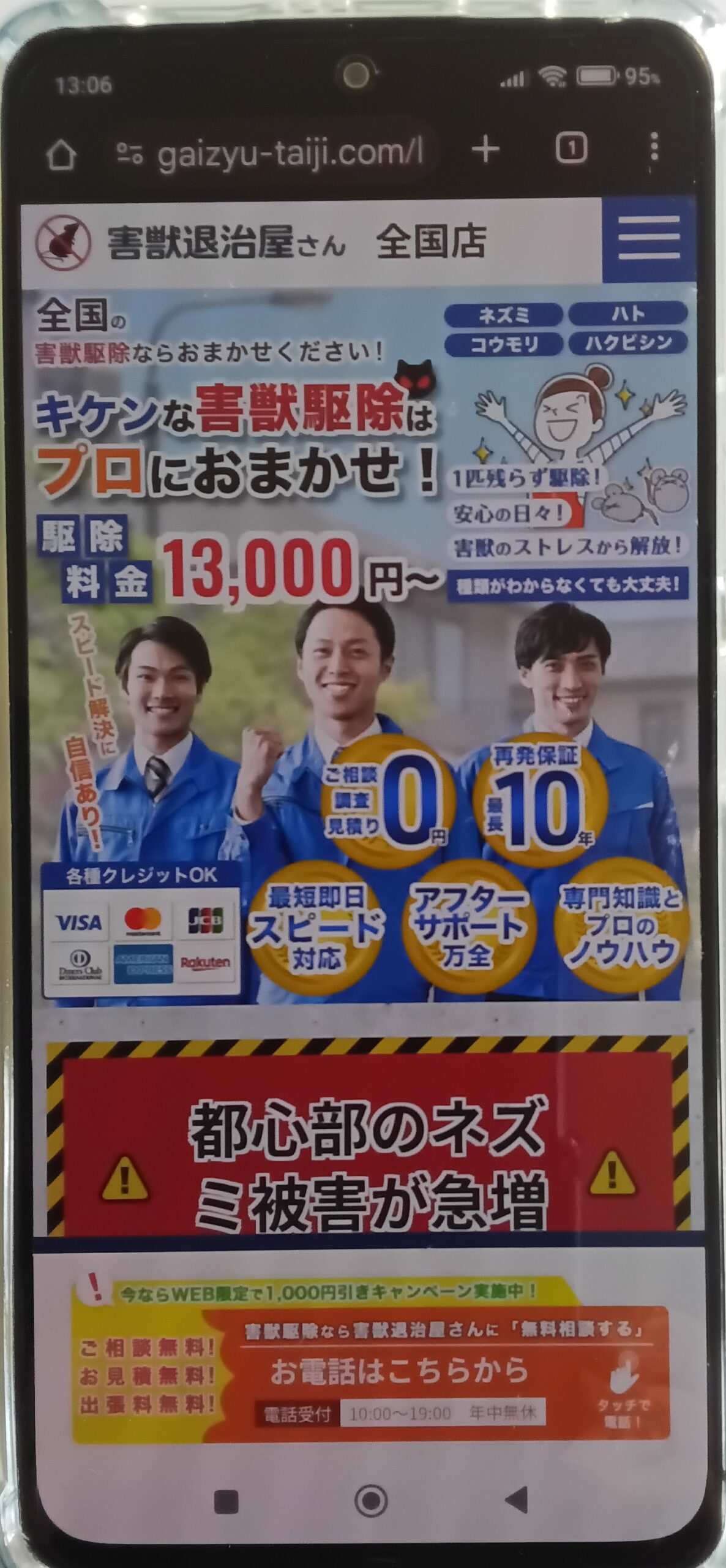 | 7位:駆除ザウルス | ネズミ・ハクビシン・アライグマ・ネズミ・イタチ・テン・コウモリ等 | 最短即日対応!累計相談実績数3万件 |