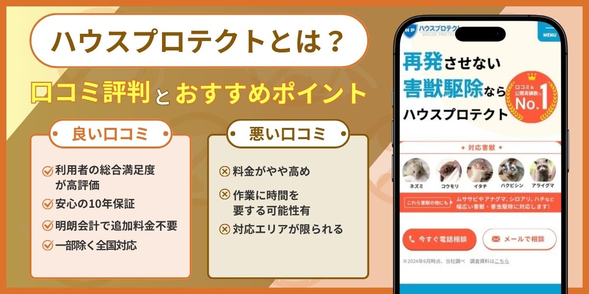 本記事では、ハウスプロテクトの評判・口コミを徹底的に分析し、害獣駆除業者を選ぶポイントやサービスの特徴を深掘りします。