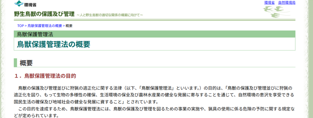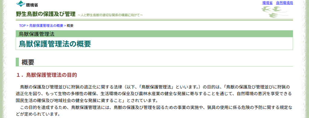 詳細: 環境省自然環境局 https://www.env.go.jp/nature/intro/ - 鳥獣保護管理法